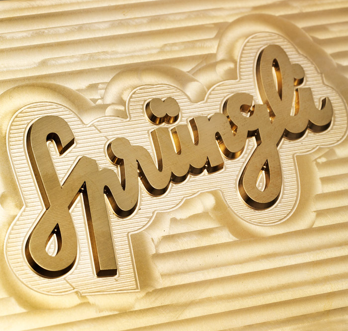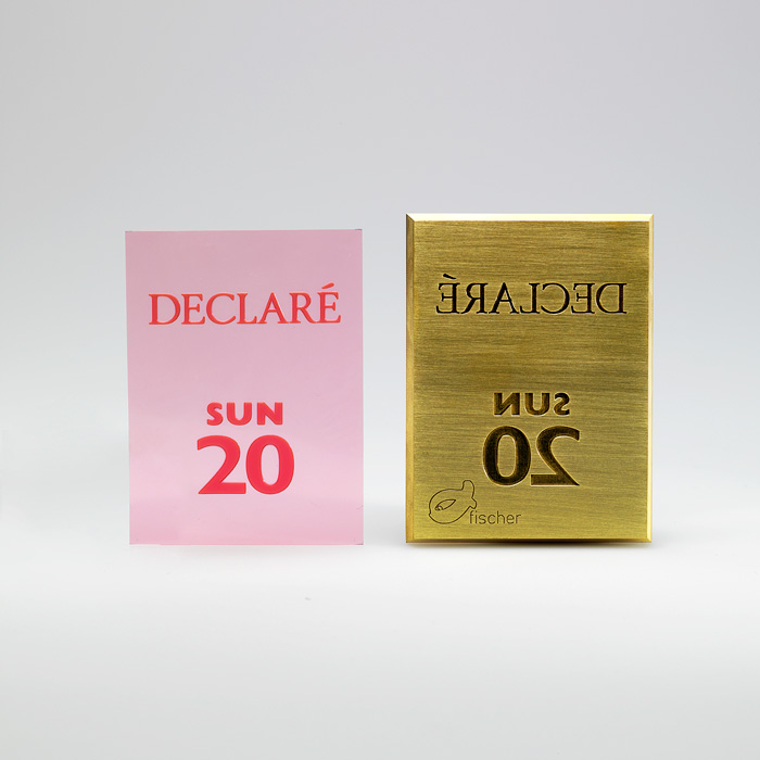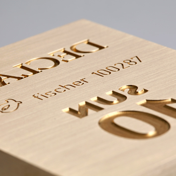Aus hochwertigem, thermisch entspanntem Messing (7 mm) werden Gravuren für die Herstellung