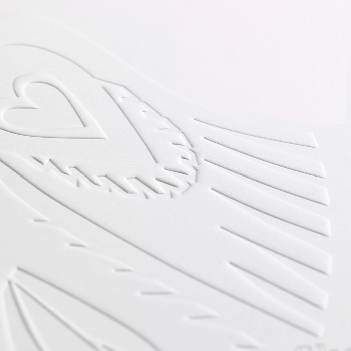 von Heissfolienprägungen, Heißfolienrelief, Tiefprägungen sowie Blind- und Strukturprägungen samt Patrizen hergestellt.